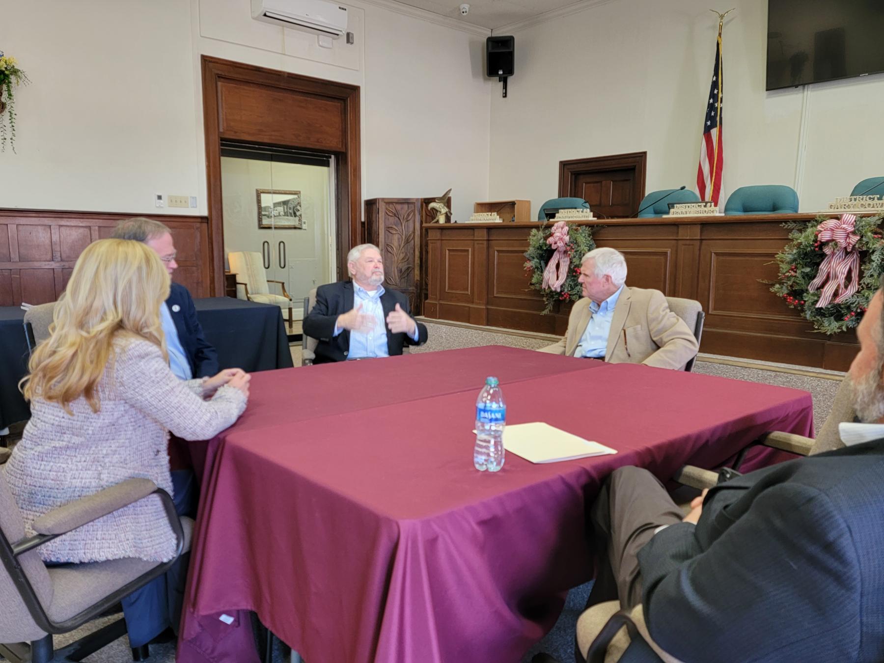 December 19, 2023 - Several leadership members from the Alabama Department of Agriculture & Industries made a stop in Jasper yesterday. Commissioner Rick Pate, Assistant Commissioner Bob Plaster, and Deputy Commissioner Tami Culver Allen joined Mayor David O’Mary and City Planner Brent McCarver at City Hall for a brief, informal meeting before Commissioner Pate spoke to the Jasper Kiwanis Club as their guest speaker. We enjoyed having them in Jasper!